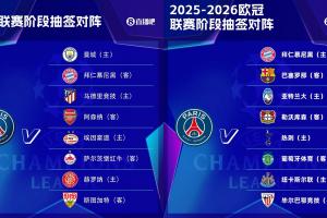 体育资讯08月29日讯 25/26赛季欧冠联赛阶段抽签出炉,巴黎的签运不佳,又是一众豪门劲旅。对比上赛季有过之而无不及。