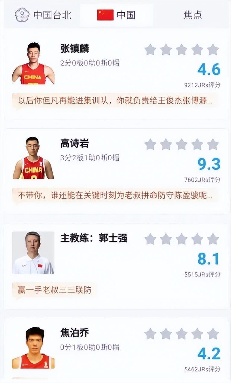开云体育官方网站-中国男篮逆转台北,李弘权正负值+21,赛后评分出炉,张镇麟4.6分